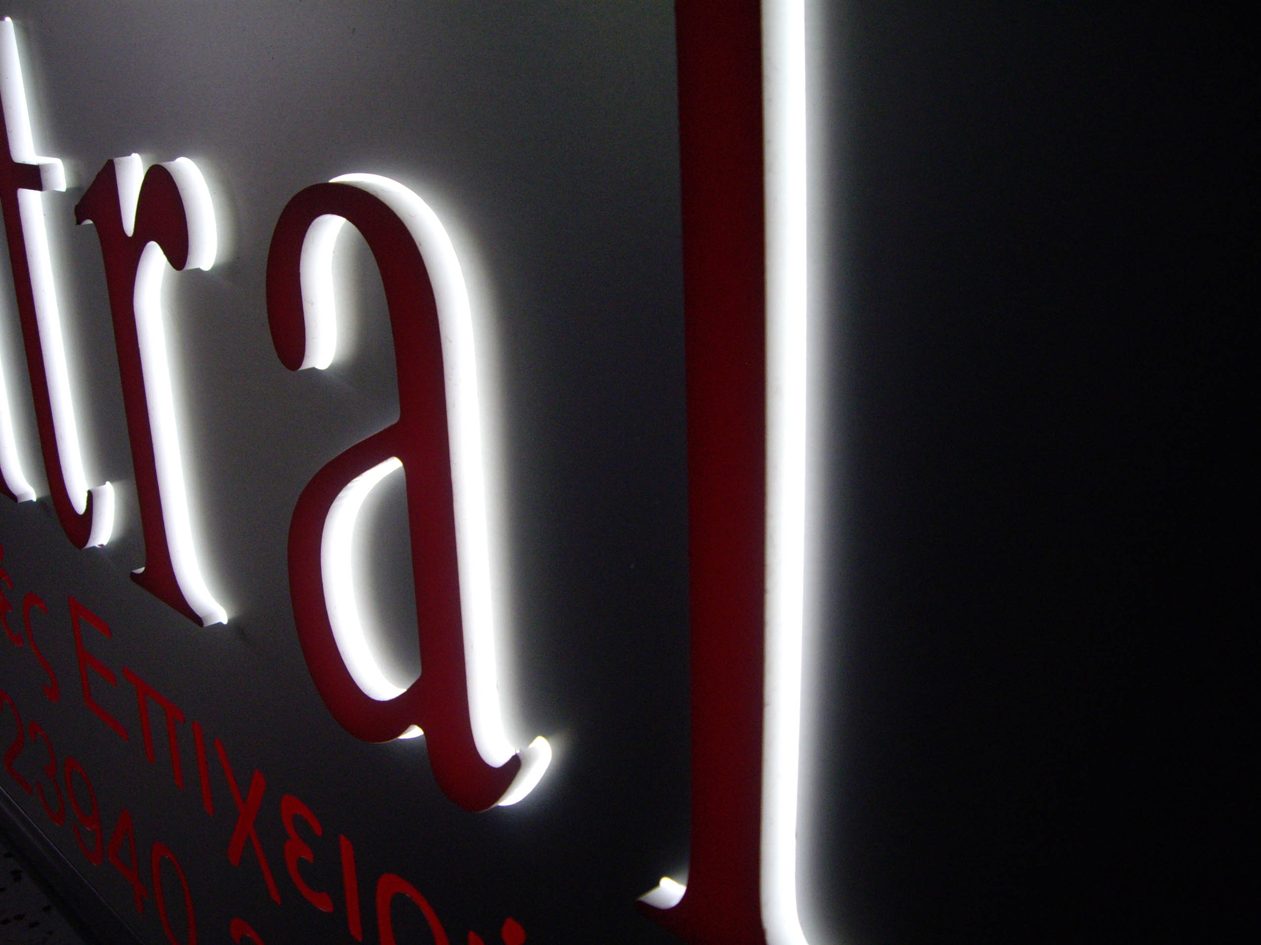Φωτεινά γράμματα, πολλών ειδών, σε ποικίλες διαστάσεις και χρώματα, για χρήση είτε σε εξωτερικούς χώρους είτε για εσωτερικούς.